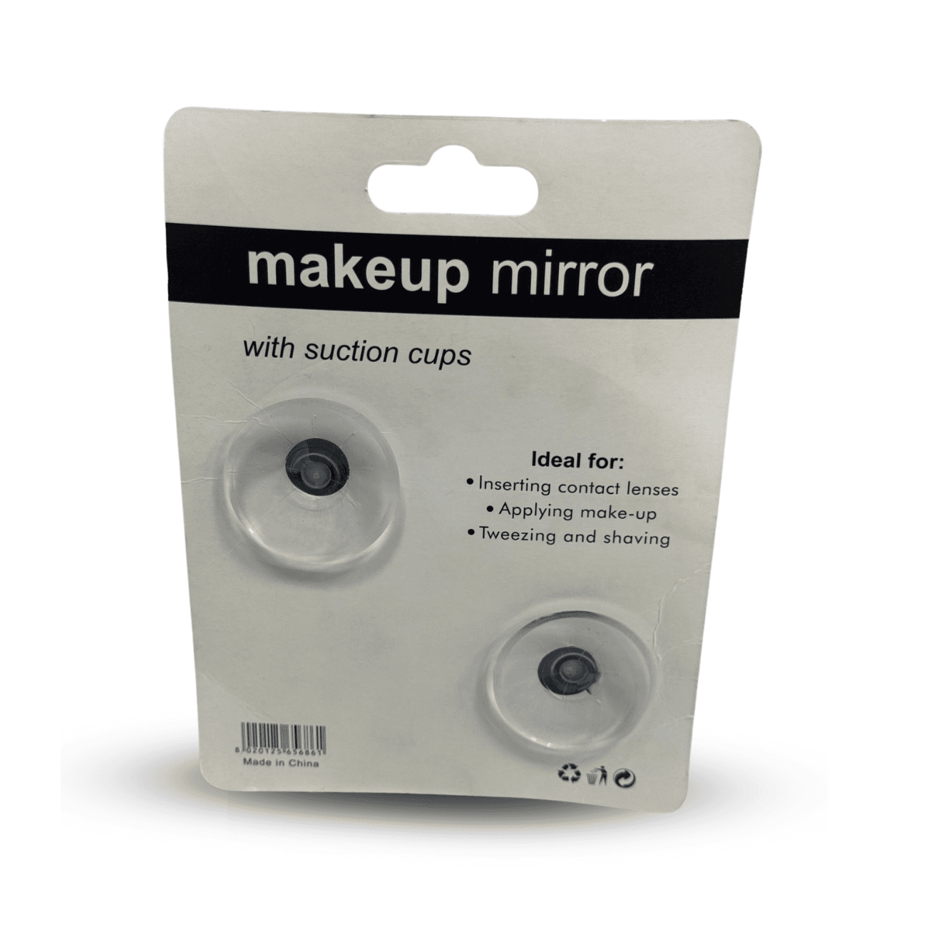 Compact and practical cosmetic mirror designed for close-up grooming and makeup application. Features clear magnification for precision and strong suction cups for secure attachment to smooth surfaces. Ideal for makeup, shaving, eyebrow shaping, and skincare routines at home or while traveling.