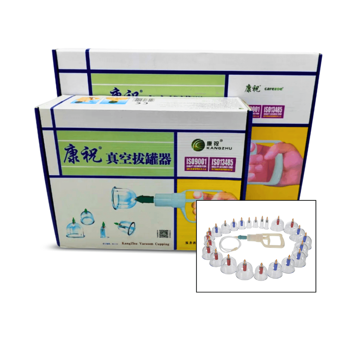 Complete cupping set designed to help relieve muscle tension and improve blood circulation. Ideal for spa, therapy, and wellness treatments.