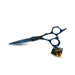 Premium blue Damascus steel scissors for precise, smooth, and durable hair cutting, ideal for professional stylists.